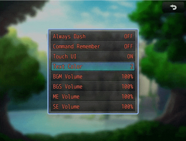 This plugin adds an extra option at the Options Window that allows players to change the game's default text color. All color codes are supported. A new text code, '\C[32]', reverts a text's color to the one specified by the player.
